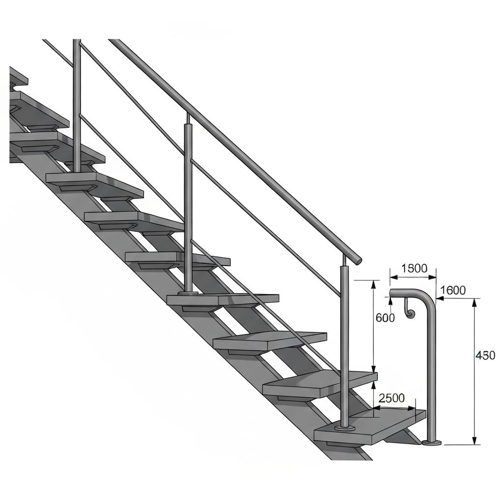 Escaleras rectas, caracol y barandas con esquema de corte y montaje paso a paso.